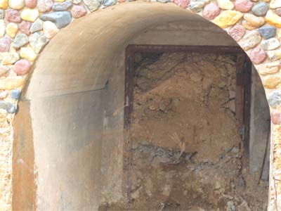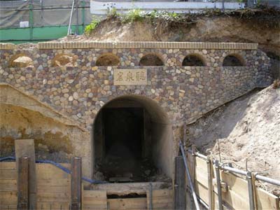 東西に伸びる90mのトンネルは昭和43年のマンション建設時に取り壊されたと思っていましたが、2007年3月に駐車場棟の建設現場から東出入り口が偶然発見されました。